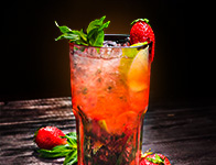 Strawberry, mint leaves, lime wedge, sugar, white rum