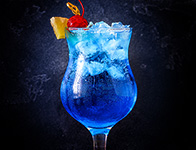 Blue Curacao, Gin, 7 Up, Bitters, and sugar syrup